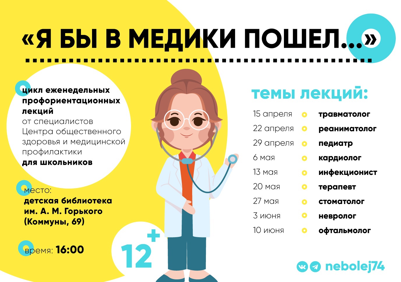Уточнить информацию можно по электронной почте: chelcmp@mail.ru, в теме письма указывайте – «Цикл занятий Я бы в медики пошел».